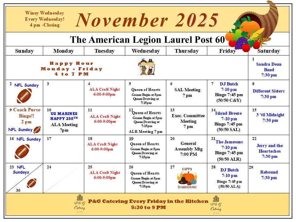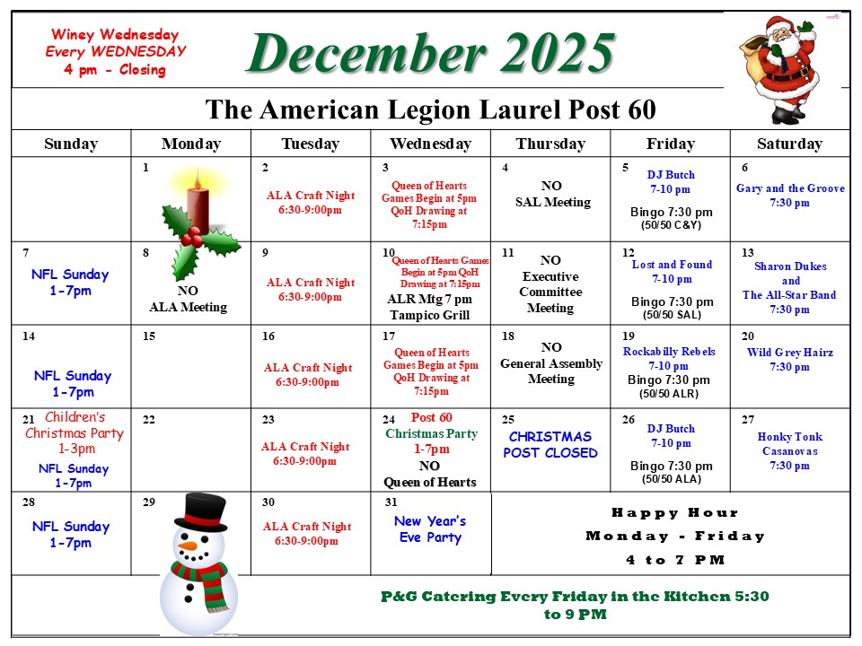 EVENTS FOR POST 60 MEMBERS AND THEIR GUESTS